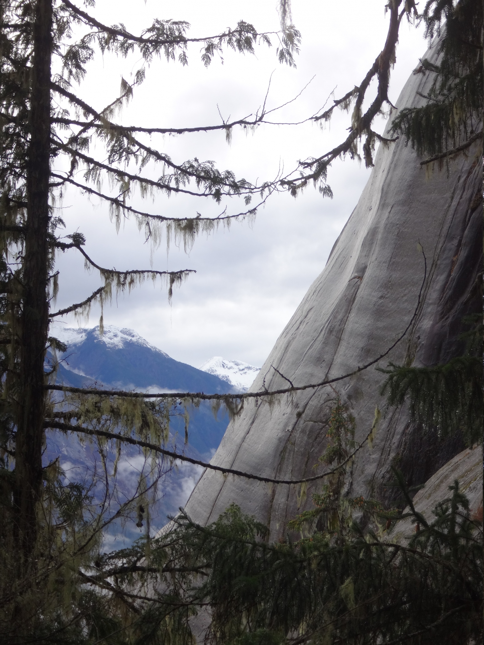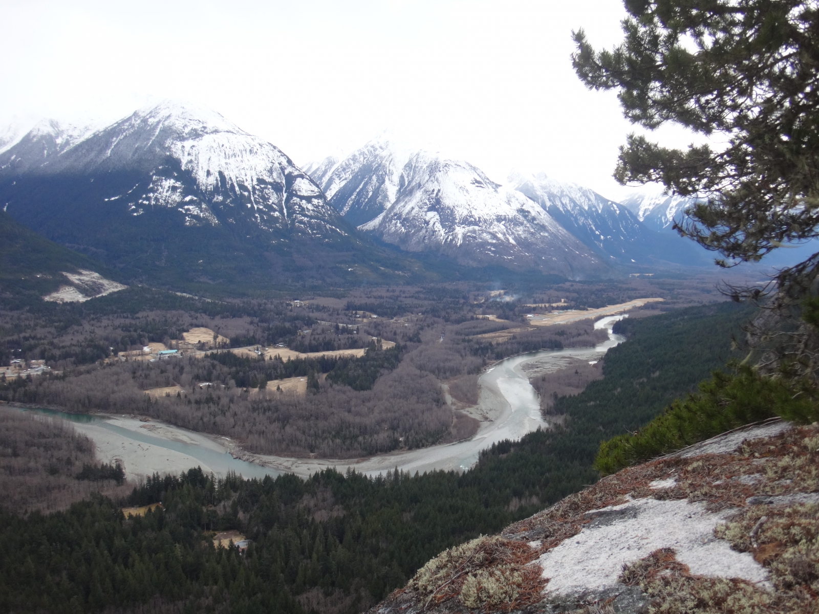 Starting up the Saloompt Bluffs trail, continue north up the blunt ridge, through mixed slabs and tree islands until gaining the alpine.