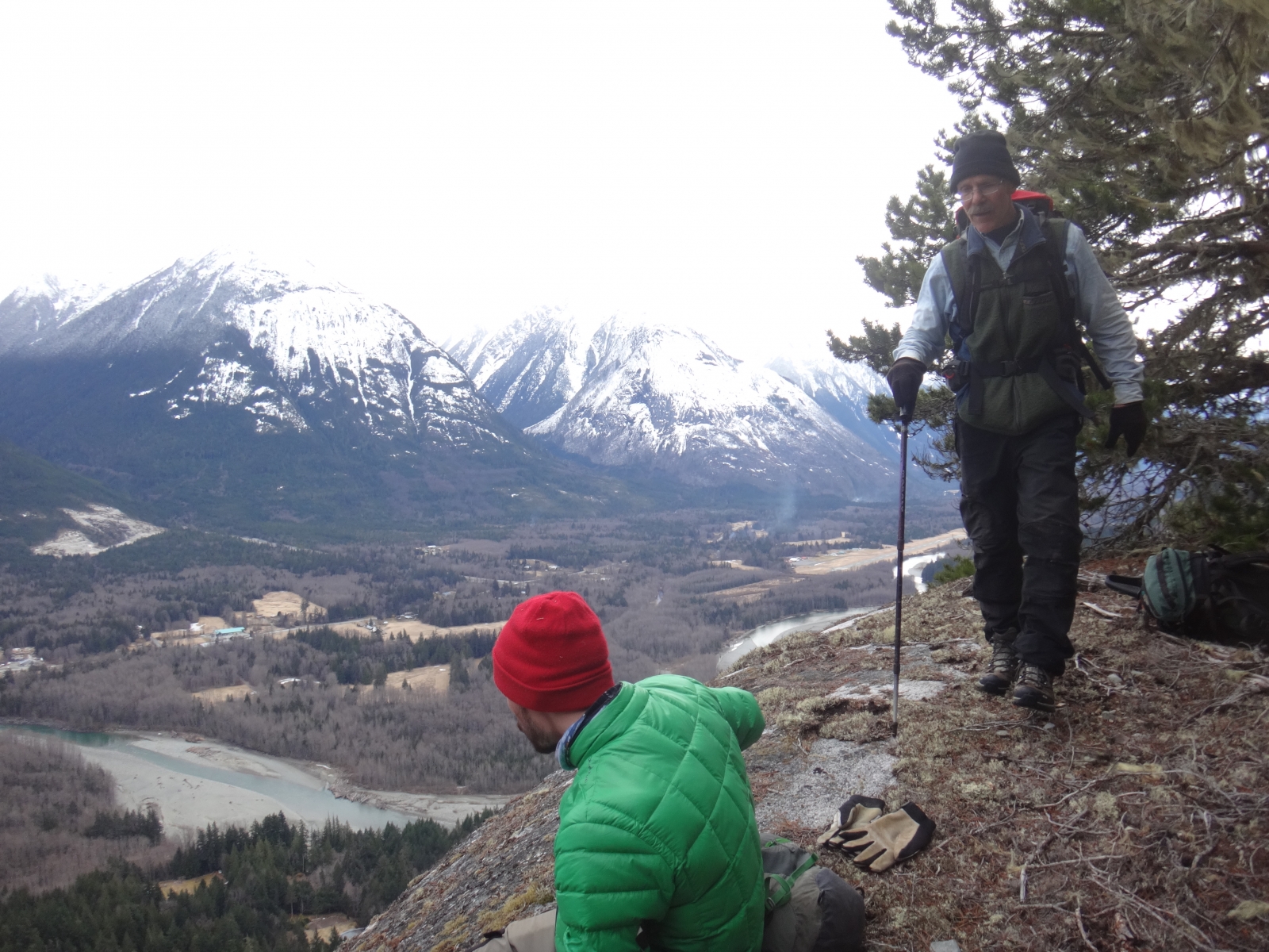 Descent: Continue through alpine terrain to gain the ridge, then descend the Goat Ridge trail to rejoin the Saloompt Bluffs trail. Or, rap the route.